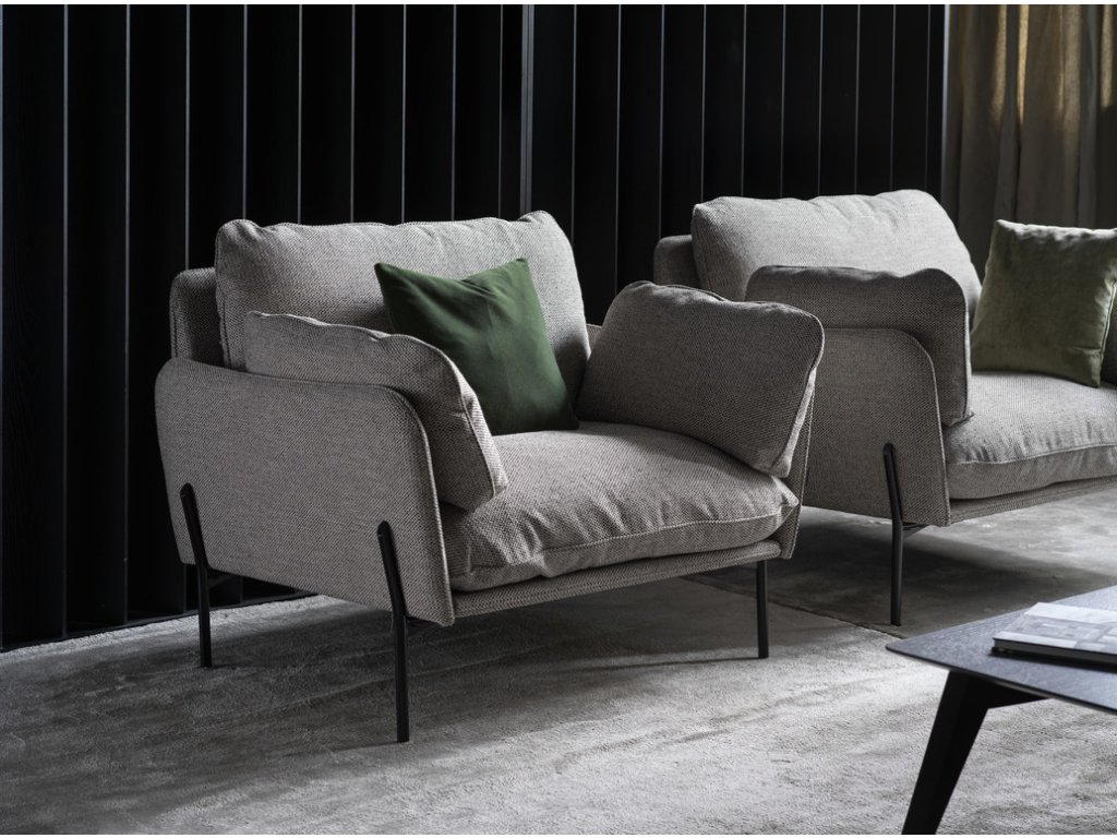 O pohodlí se stará syntetické prachové peří (C4). Samotný sedák je tvořen kombinací studené pěny se syntetickým prachovým peřím, hřbet vyplňuje směs syntetického prachového peří a kuličkové výplně.