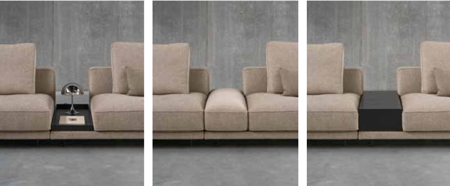 Zajímavostí sedačky jsou 3 flexibilní doplňky pro sedačky, které mohou být umístěny po stranách sedačky nebo jako spojovací modul.